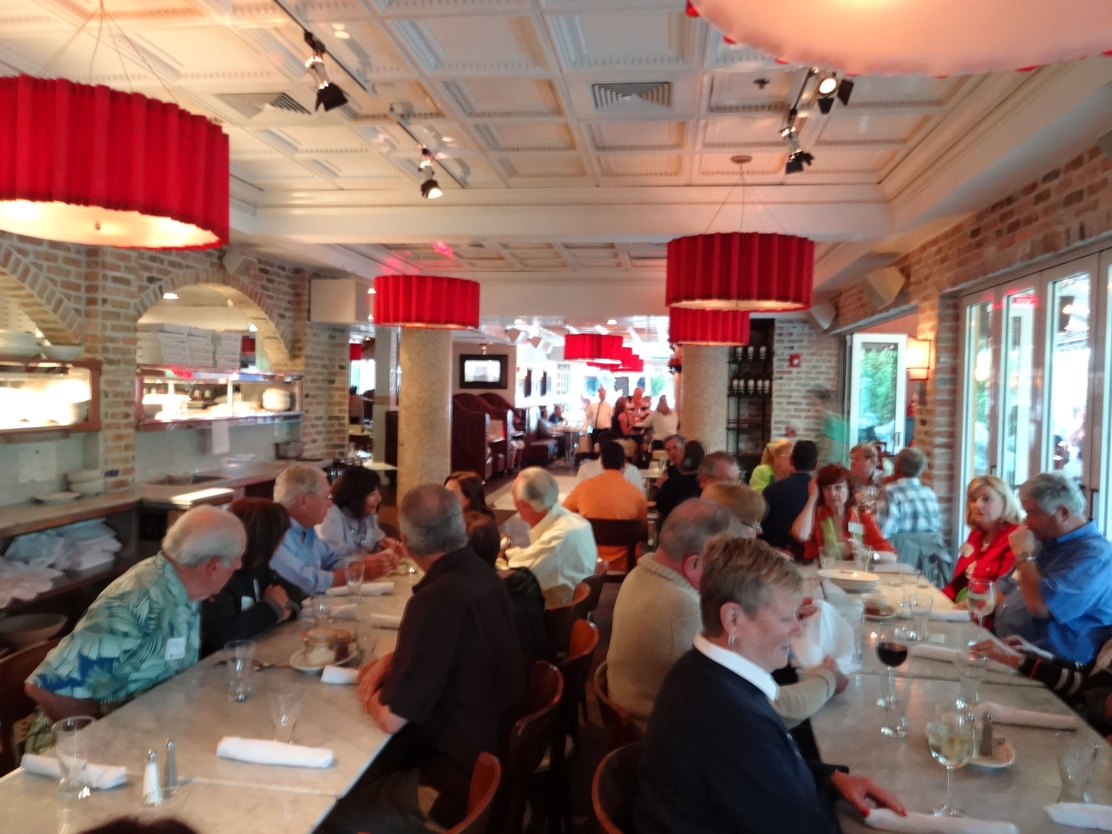 For this inaugural event, Vic & Angelo’s was stop #1. Guests gathered at the bar and introduced themselves to others sporting a Dishcrawl nametag — and their dining companions for the evening. For this first event, there were nearly 50 in attendance. The dishcrawlers made their way to the long tables in the back of the restaurant and mingled with the group — and awaited a plate of Italian goodness. Vic & Angelo’s served up a sampling of some of their signature dishes — Calamari Fritti, a meatball and a chicken wing.