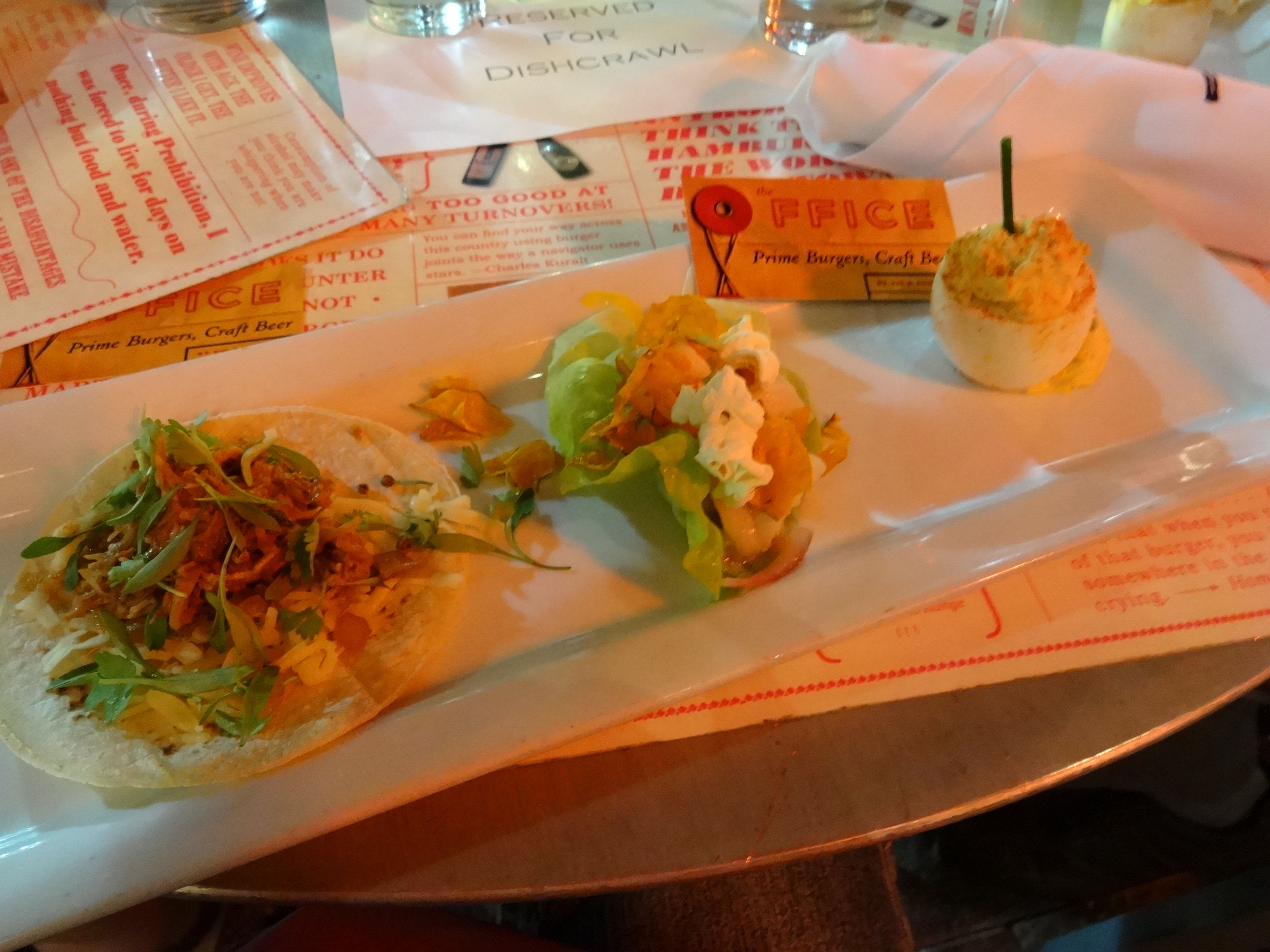 The group gathered up their things and headed across the street, as The Office was stop #2. Chef Omar mingled with the crowd and presented us with some of his favorite dishes — and even got a taste of the new menu recently released at The Office. A pulled pork taco, The Office Ceviche and a truffle deviled egg were quickly eaten up by the guests.