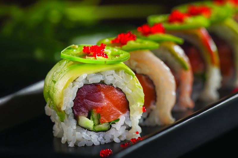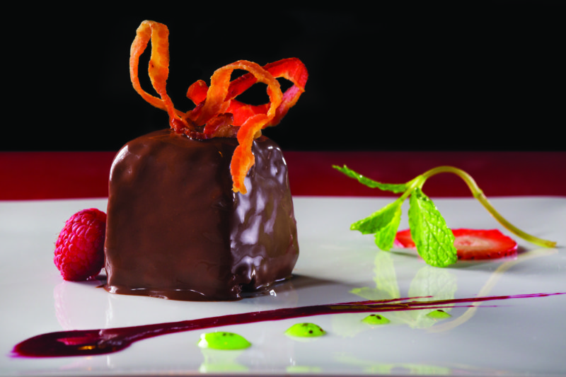 However, if you want to save room for one of Pastry Chef Thomas Chalcu’s sweet creations, consider a lighter main course such as Sushi Chef Justin Zhang’s Nitrogen Make. This exceptional specialty roll has salmon, tuna, masago, cucumber, and cilantro that is rolled in white sushi rice. To finish, the roll is crowned with hamachi, avocado, and jalapeno rings, and drizzled with ponzu sauce.