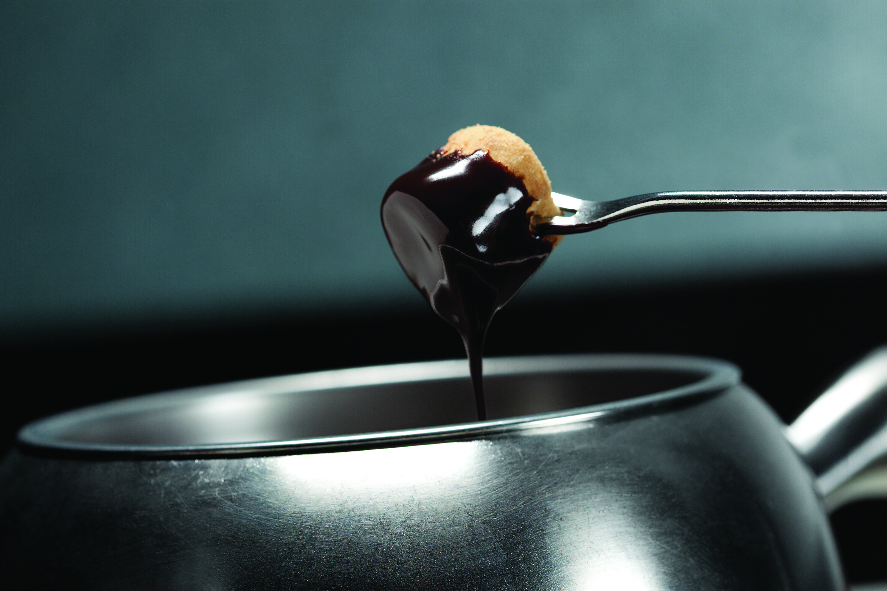 At the fondue restaurant, each guest receives a different set of color-tipped fondue forks, so they can be easily identified from other fellow diners sharing the pot. The pot is set on low-heating plates embedded in the center of the table, and operated by your server.